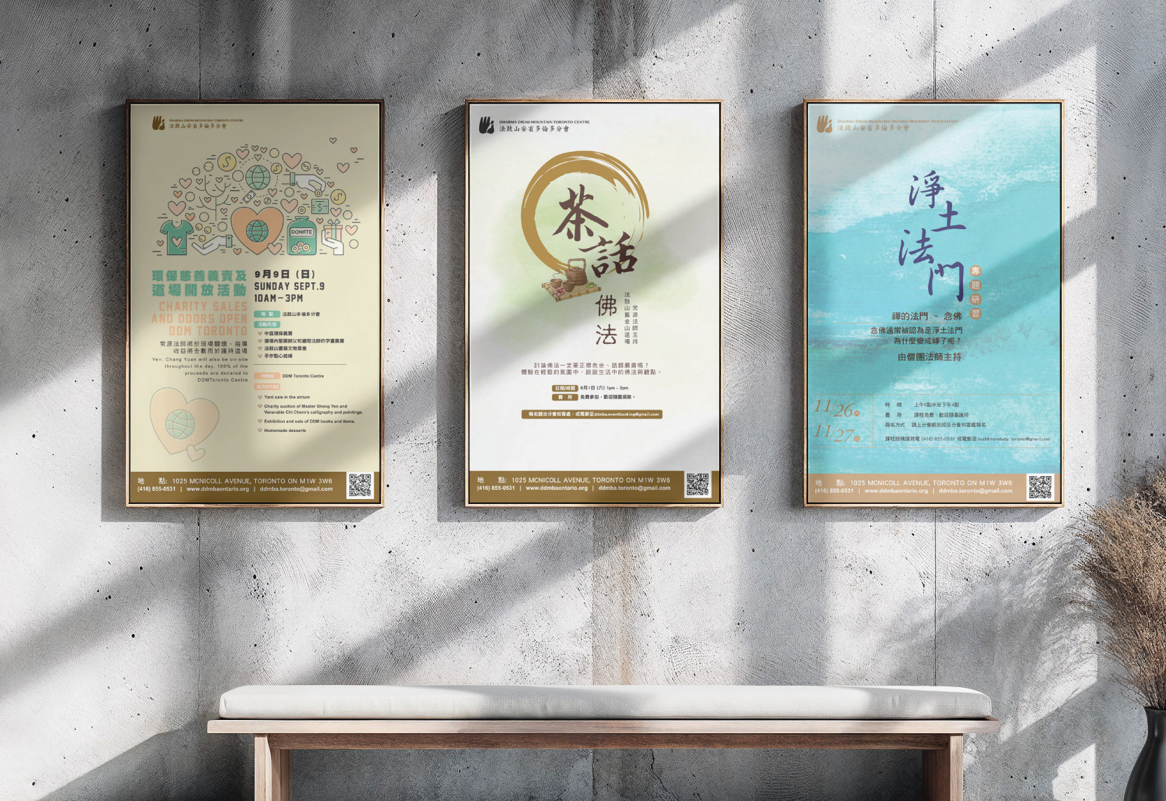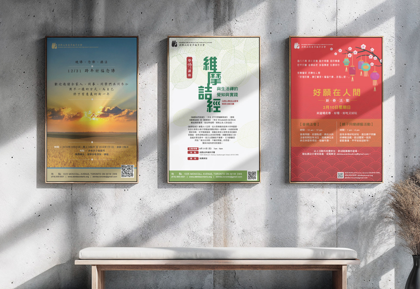 A series of print design projects created for various clients, including my long-term partner, Dharma Drum Mountain Ontario Buddhist Association. I’ve had the pleasure of collaborating with them for many years, consistently developing concepts for their seminars and events.